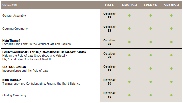 The table below summarises the meetings where simultaneous translation will be provided. Upon your arrival at the Congress, please consult the final programme to check whether simultaneous translation is being provided in other languages or for other meetings.