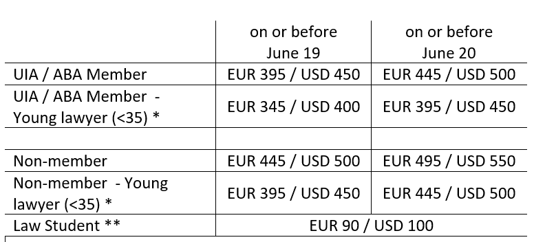 All registrations received by the Union Internationale des Avocats (UIA) along with the full payment of fees corresponding to the events selected will be confirmed in writing.