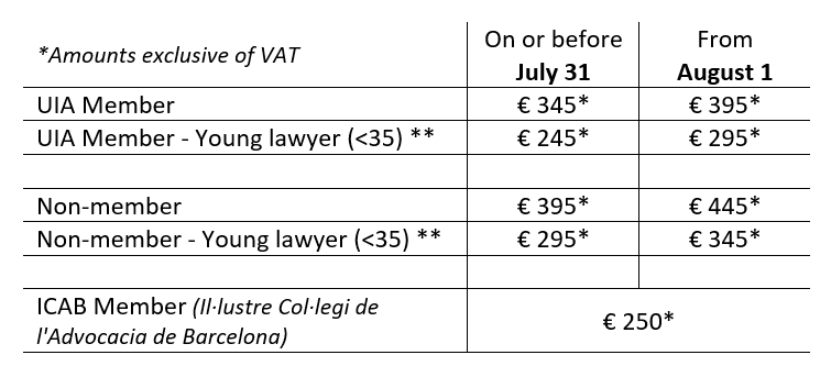 All registrations received by the Union Internationale des Avocats (UIA) along with the full payment of fees corresponding to the events selected will be confirmed in writing.
