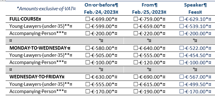 ** Please attach proof of age to the registration form to benefit from the young lawyer fee.