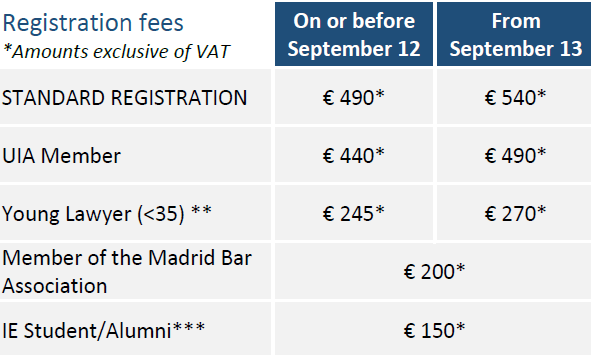 * The VAT (21%) can be applied to the amount stated above according to the European Directive 2006/112/CE of November 28, 2006. If you provide an EU VAT ID number, the VAT will not be charged. For more information, please contact the UIA.