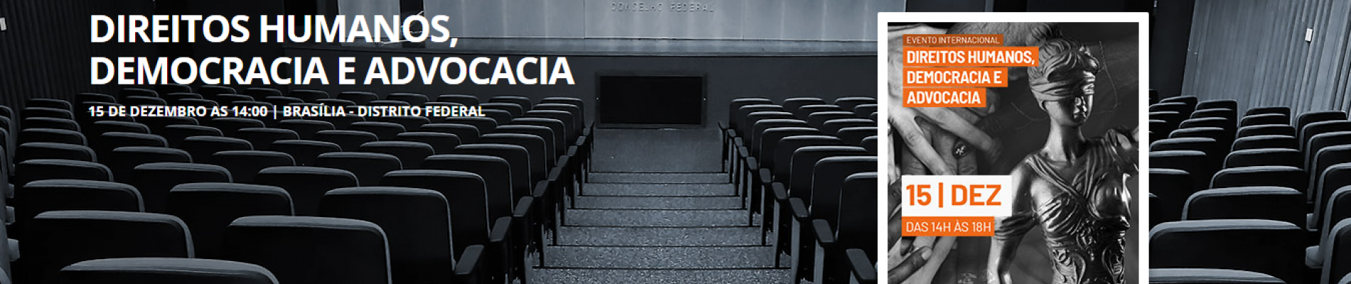 O Conselho Federal da Ordem dos Advogados do Brasil, por meio de sua Subcomissão de Assuntos Internacionais em Direitos Humanos, realizará o evento "Direitos Humanos, Democracia e Advocacia" no dia 15 de dezembro, das 14h às 18h00.