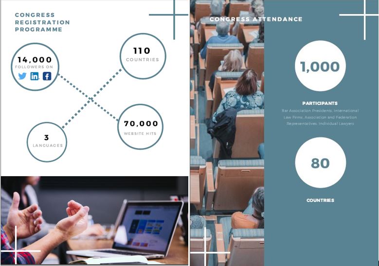 The UIA’s annual Congress hosts over 1000 lawyers from over 80 countries.  The Congress presents a unique opportunity for your organization to reach international lawyers, law firms and bar associations. From the exhibition area specially designated for sponsors to the multiple sessions of Congress, sponsors have continuous exposure to our international network of lawyers. By sponsoring our Congress, your firm will become linked to a globally accredited lawyer’s association.