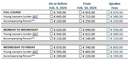 * Please attach proof of age to the registration form to benefit from the young lawyer fee.