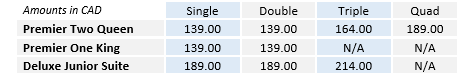 • Rates above are net, in Canadian dollars, based on double occupancy.