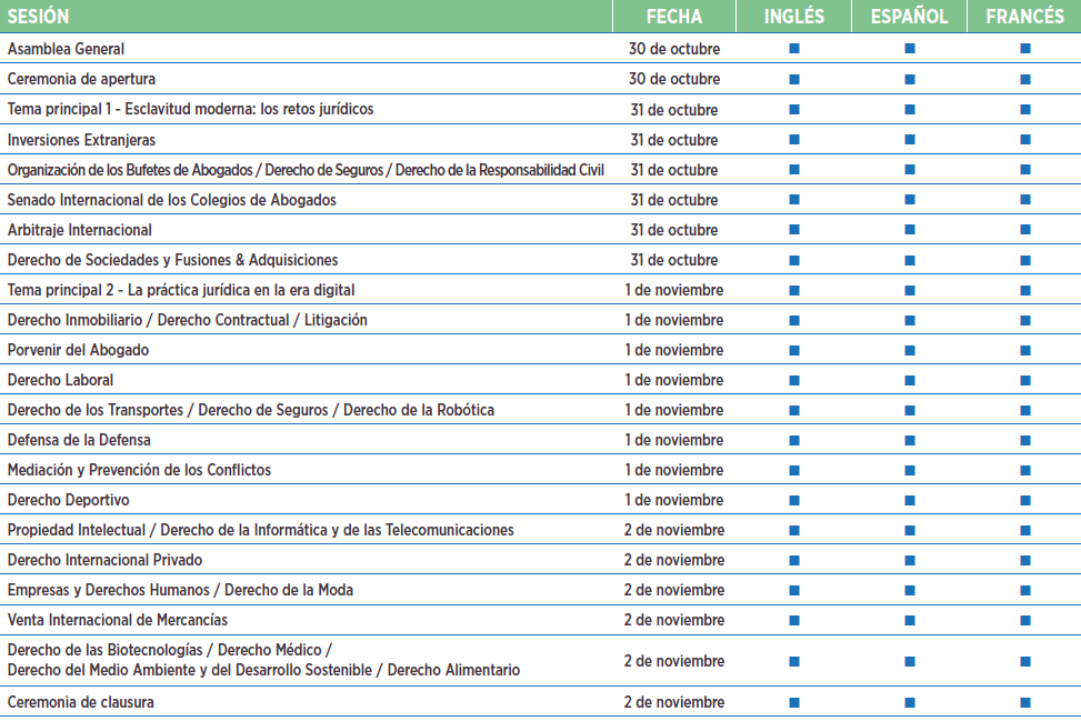 Toda inscripción recibida por la Union Internationale des Avocats (UIA) y acompañada del pago íntegro del precio correspondiente a los eventos o actos elegidos será confirmada por escrito. Se asignará un número de inscripción a cada participante, el cual le será solicitado al registrarse en el Centro de Congressos, para entregarle la documentación relativa al congreso.