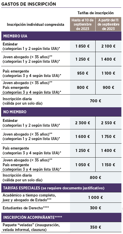 (**) Esta inscripción sólo es para jóvenes abogados de menos de 35 años.