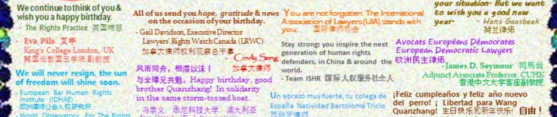 The UIA is deeply saddened about Wang Quanzhang's situation. Please see below the e-cards we sent to his family last week for his Birthday.