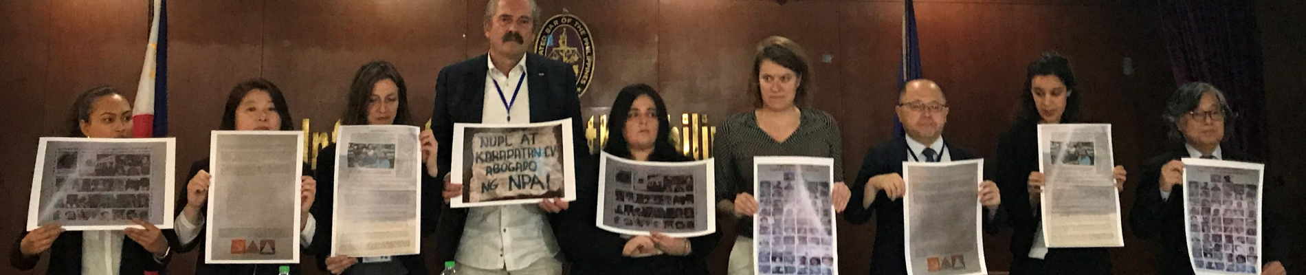 La délégation internationale, composée de 9 avocats, s’est réunie dans le Grand Manille et à Iloilo avec des représentants du gouvernement, des ONG, de la Commission des Droits de l’Homme aux Philippines, des professionnels du droit, des victimes et des familles de victimes, afin de recueillir des données sur les dénonciations des attaques dont ont été victimes les avocats, les procureurs, les assistants juridiques dans le cadre de l’exercice de leur profession.
